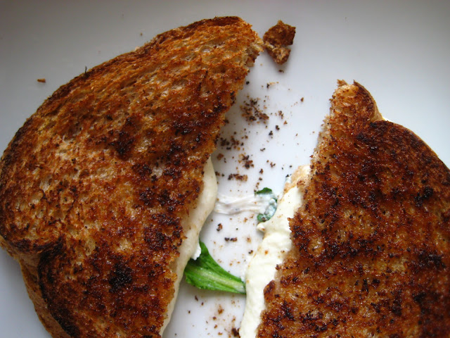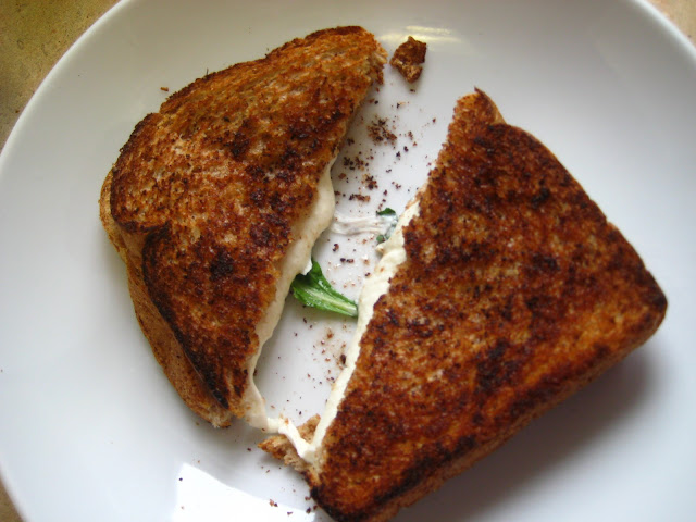 Place on warmed pan on stove with a sliver of butter on top and on bottom. Let one side brown, then flip. Done.