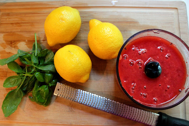 Strawberry, lemon and basil sorbet